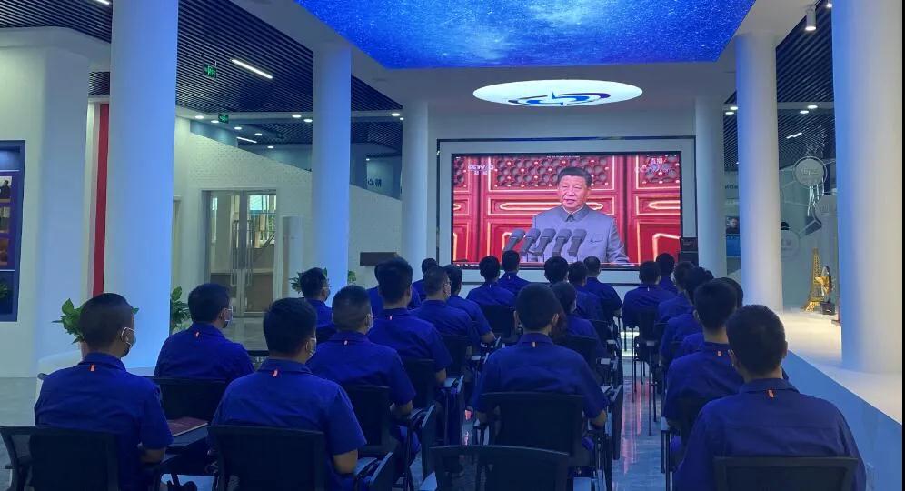集團(tuán)公司總經(jīng)理、黨組副書記劉大山,黨組副書記周艦,黨組成員、總會(huì)計(jì)師張華,紀(jì)檢監(jiān)察組組長、黨組成員陳學(xué)釧,黨組成員、副總經(jīng)理鄒文超,黨組成員、副總經(jīng)理植玉林帶領(lǐng)總部全體職工觀看慶祝大會(huì),各單位組織機(jī)關(guān)干部、科研人員、車間工人等通過集中收看、電視、電腦、手機(jī)網(wǎng)絡(luò)等方式觀看慶祝大會(huì)。