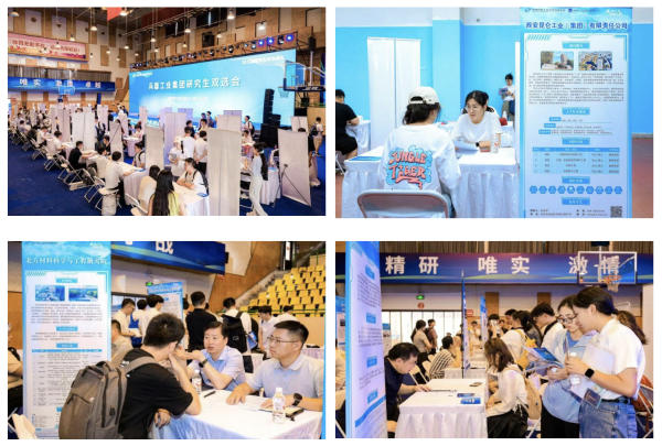 畢業(yè)生代表回顧成長歷程,感謝培養(yǎng)平臺與導(dǎo)師指導(dǎo),誓言投身國防事業(yè)。導(dǎo)師代表肯定學(xué)生科研淬煉的“嚴(yán)謹(jǐn)”與“擔(dān)當(dāng)”,寄語傳承人民兵工精神,在強(qiáng)軍報(bào)國中實(shí)現(xiàn)價(jià)值。校友代表以科研經(jīng)歷詮釋兵工人使命,勉勵(lì)學(xué)弟學(xué)妹以裝備成果接力書寫強(qiáng)軍報(bào)國答卷。全體師生共同唱響《強(qiáng)軍有我》,鏗鏘有力的歌聲回蕩在體育館內(nèi),既飽含著對青春理想的告白,更傳遞出投身國防事業(yè)的堅(jiān)定信念,為這場畢業(yè)盛典增添了厚重的使命底色。 典禮的莊重氛圍未散,兩場精準(zhǔn)對接國防需求的雙選會已在相鄰場館同步開啟。60家集團(tuán)公司下屬單位的招聘人員與2025屆畢業(yè)生、在讀研究生及工程碩博士們圍坐洽談,圍繞崗位需求與項(xiàng)目方向,以簡歷和科研成果為媒展開深度對接。這場覆蓋多層次人才的就業(yè)服務(wù),精準(zhǔn)銜接科研人才儲備與國防需求,為兵器事業(yè)高質(zhì)量發(fā)展注入活力。  兵器工業(yè)集團(tuán)研究生雙選會現(xiàn)場