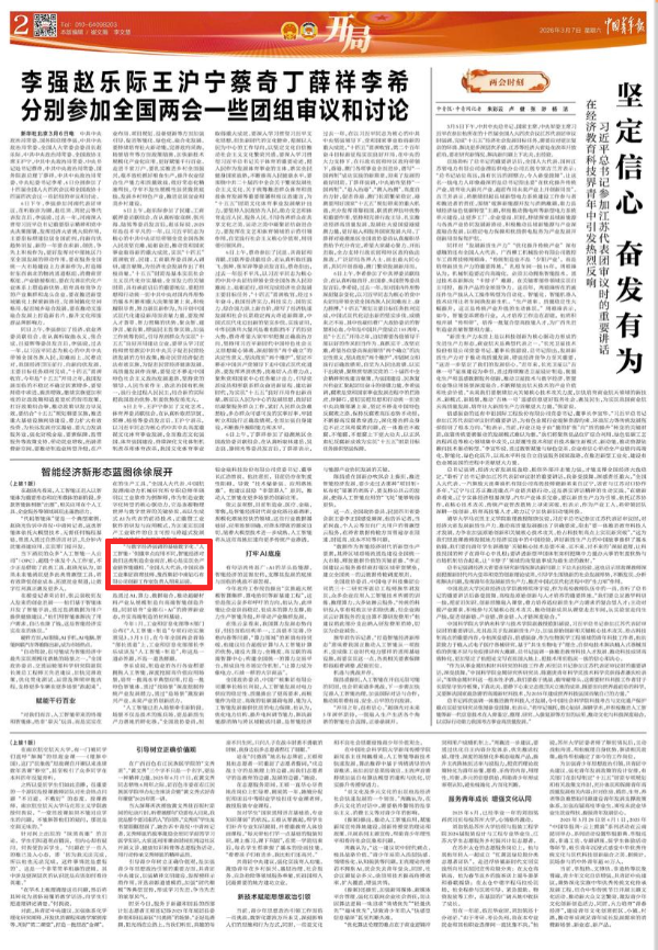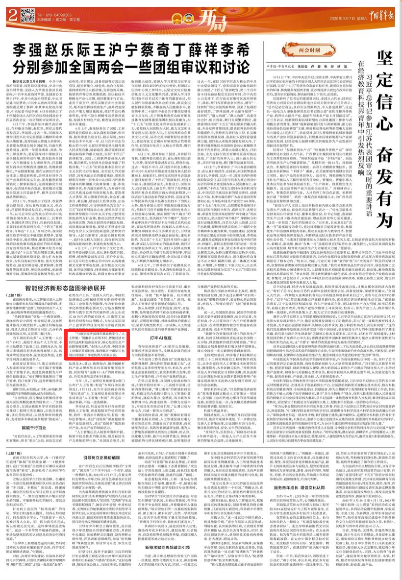 中國青年報-兩會新觀察 賦能千行百業 融入各個角落 智能經濟新形態藍圖徐徐展開