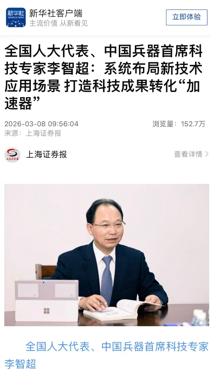 全國人大代表、中國兵器首席科技專家李智超:系統布局新技術應用場景 打造科技成果轉化“加速器”