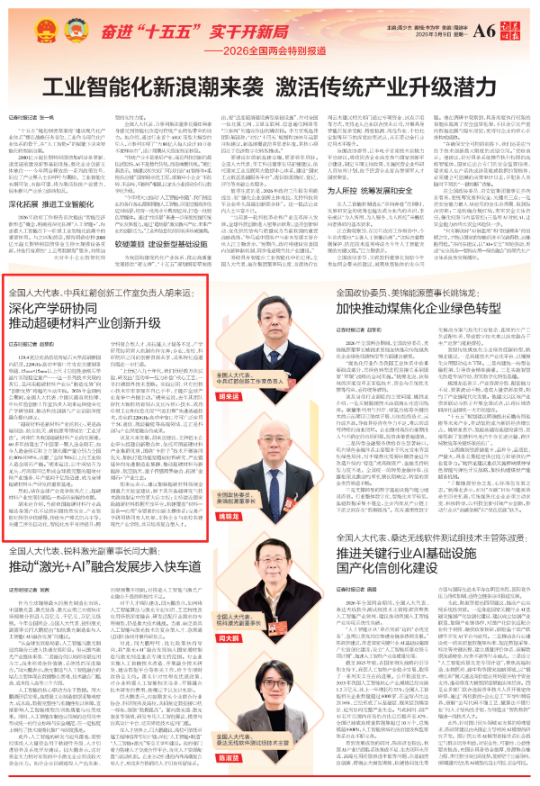 證券時報-全國人大代表、中兵紅箭創新工作室負責人胡來運:深化產學研協同 推動超硬材料產業創新升級