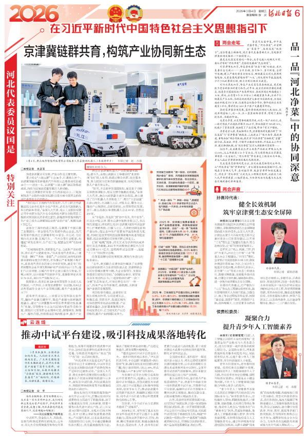 “區域間的競爭,表面看是產業、企業和產品的競爭,背后是產業鏈的競爭。”在武春虎代表看來,三地“共造一輛車”“共鑄一條鏈”,產業協同已由傳統的轉移承接向深度合作轉變,有效推動產業規模不斷擴大。武春虎代表所在的凌云中央研究院,就是專門負責同整車企業開展先期預研和產品同步設計工作。他們與北京奔馳、長城汽車等車企建立聯合實驗室,實現從預研、設計到量產的同步開發,直接取得定點項目30余項,項目年產值超50億元。